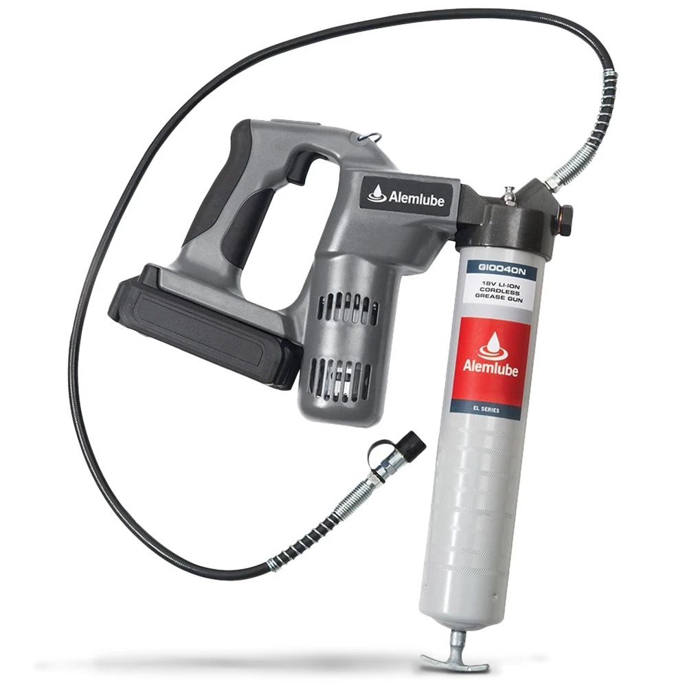 The Alemlube EL Series G10040N 18V Lithium-ion cordless grease gun takes the hard work out of greasing. A must for any busy workshop, the Alemlube EL Series G10040N can dispense up to twelve 450 gram cartridges of grease using the 3000 mAh battery before recharging or battery changeover.