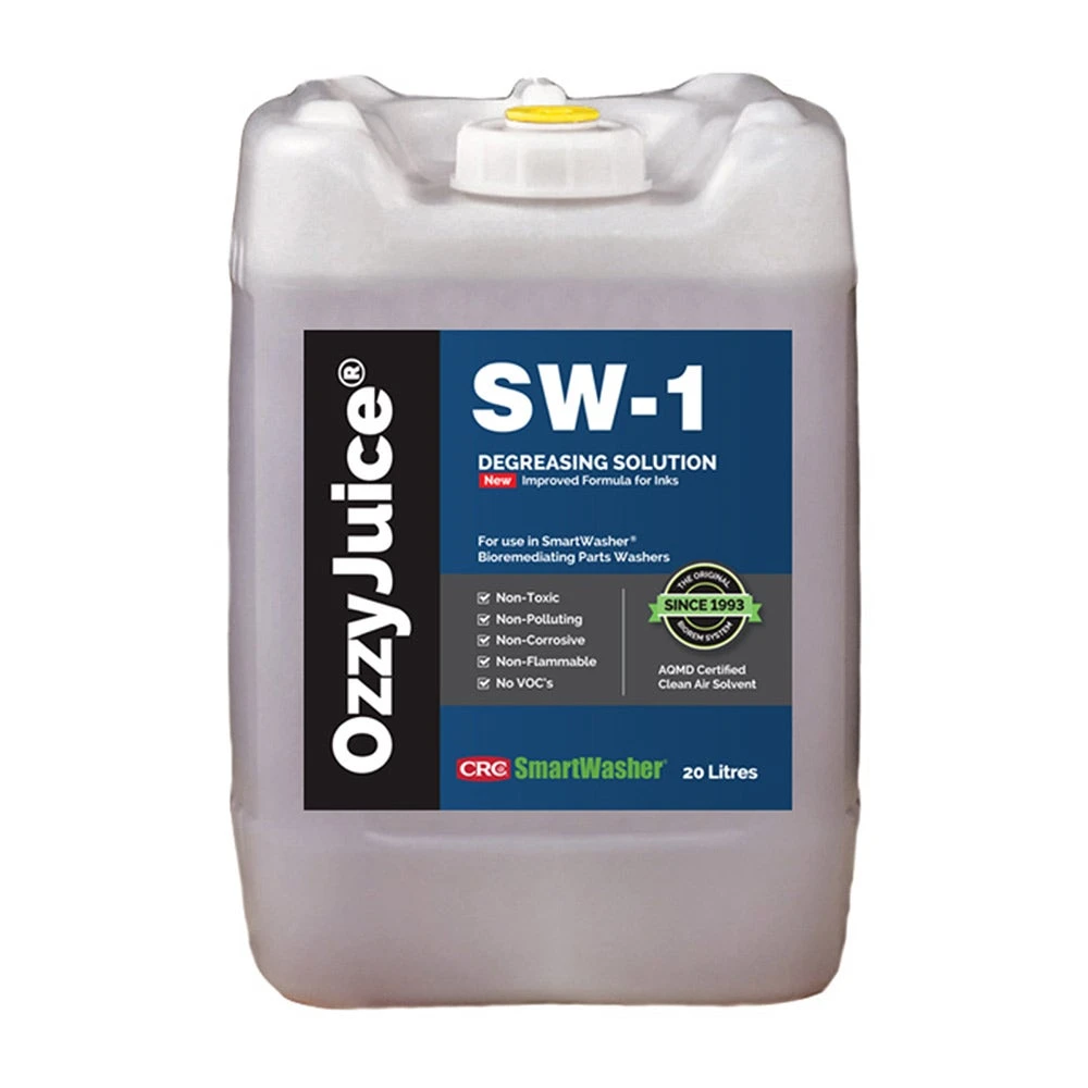 Ozzy Juice is designed specifically for use in the CRC SmartWasher system where it performs to the optimum. The Ozzy Juice is heated in the parts washer making it comfortable to use and because it is non-caustic the solution won’t dry, crack or irritate the skin. Ozzy Juice SW-1 is completely safe for users and the environment and the introduction of microbes through the special filter ensures that while Ozzy Juice cleans the parts, the Ozzy microbes clean the Ozzy Juice. The result is a non-hazardous parts washer degreasing solution that is clean, strong and ready to use. NSF certified.