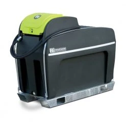 - Heavy-duty rotomolded tank with integrated lifting handles for ease of transport